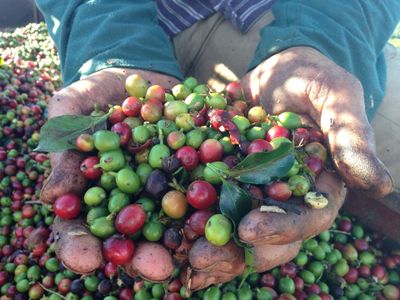 Coffee ripening depends on the rains, so flowers, ripe and unripe berries can all be found at the same time on any one plant.